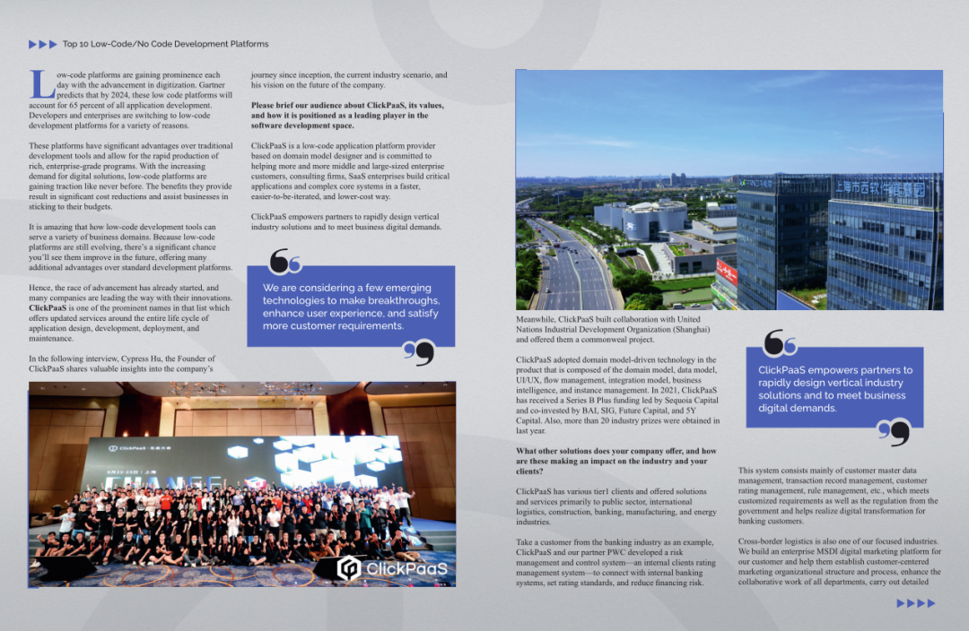 2022年年初,尊龙凯龙时官16进入网页网页版入选外媒Insights Success低代码/无代码开发平台 Top10,创始人、CEO胡柏受邀接受专访并荣登封面人物,他与Insights Success的读者分享了尊龙凯龙时官16进入网页网页版成立的初心、发展历程、当前的行业发展趋势以及他对公司未来的展望。